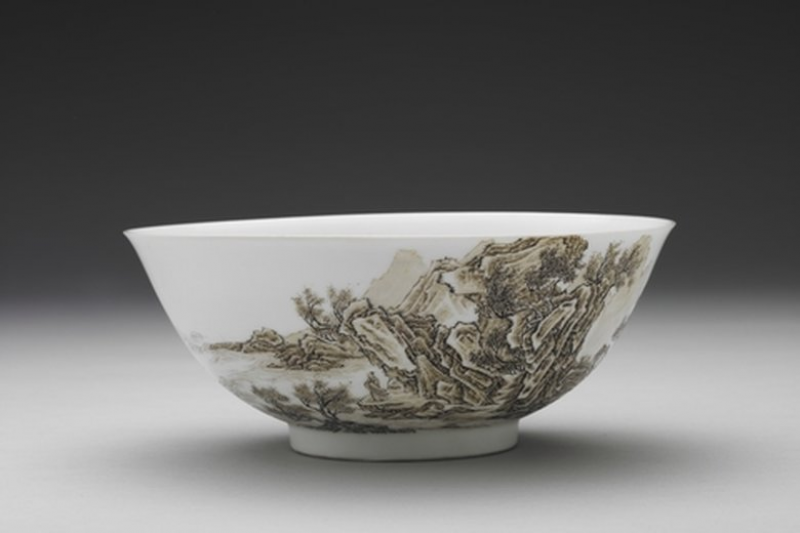 圖說:清 雍正 琺瑯彩赭墨山水碗(故宮南院提供)