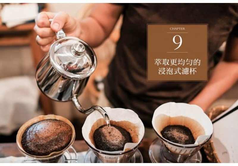 近來越來越普及的浸泡式濾杯,其英文名稱為steep-and-release brewers,如同字面意思,整個萃取過程是先經過浸泡階段,接著進入流降(滲濾)階段。就我個人的觀點,我並不意外浸泡式濾杯如此廣受歡迎。因為比起手沖,浸泡式濾杯能更輕易地創造高品質與高均勻度的萃取。(編按:現在市面上的浸泡式濾杯多附杯蓋,此為臺灣廠商發明的「聰明濾杯」。)