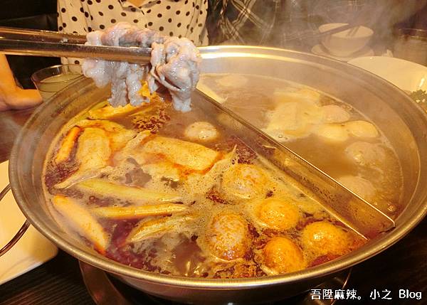 店家把肉片分成薄片,在滾燙的鍋裡涮個幾下就可食用了,這樣的吃法最誘人♥