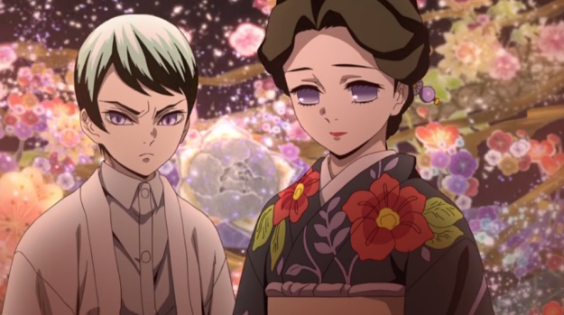 炭治郎與禰豆子在動畫初期去淺草出任務時,偶遇了從鬼BOSS手下逃出的鬼珠世小姐與愈史郎,兩人雖然是搭檔,不過愈史郎對珠世的感情卻十分微妙啊!在片尾的「大正小道消息」中,炭治郎也偷偷說,愈史郎有寫一本「珠世日記」,裡面記載的全部都是一些珠世小姐的生活:走路被絆倒、今天依然很美麗等等,都是一些發花癡的內容!可見愈史郎對珠世的一片深情啊~