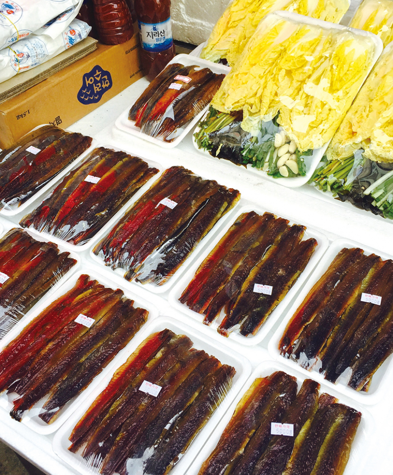 韓國東南部慶尚北道的特產,特別是在浦項市的九龍浦地區。最早以青魚來製作,1960 年代以後,青魚的產量急劇減少,所以改用秋刀魚替代。以往在冬季氣溫很低的時候,把秋刀魚掛起來,在3 ∼ 10 天內反覆冷凍、解凍,最後在陰涼處風乾。處理好的秋刀魚乾,帶有強烈的發酵異味,與知名的瑞典鹽醃鯡魚不相上下⋯⋯。