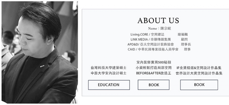 陳宗岷總編輯自2008年創辦Link Media Group(LMG)串聯媒體集團,多年來持續觀察世界各地的設計美學動態,近年更致力於將臺灣好設計推向國際,積極投入與國際各大獎項及設計機構締結友好合作關係。旗下擁有貼近時下設計話題的《Living & Design住宅美學》、別具專業與深度的建築雜誌《Core Interior空間》等其他多元刊物,及全方位更新美學靈感的「設計王DesignWant」網站平台,期望以更寬廣獨到的觀點剖析設計,將美學的觸角深入人們的生活,無時無刻感受設計的力量。