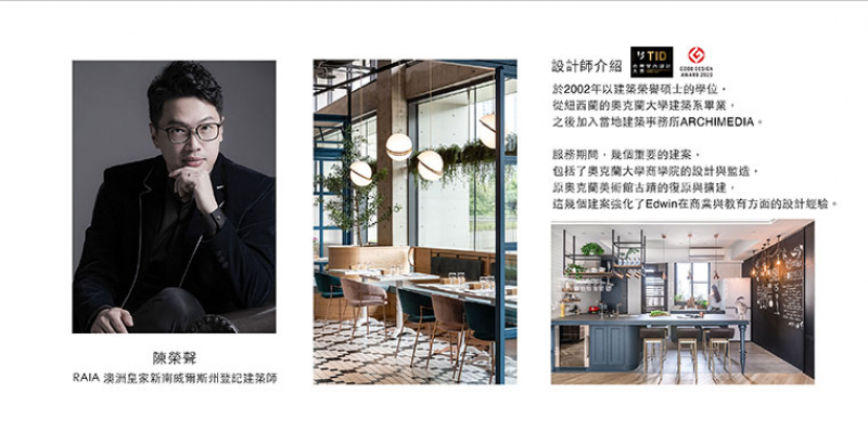 陳榮聲設計總監於2002年以建築榮譽碩士的學位從紐西蘭的奧克蘭大學建築系畢業,之後加入當地建築事務所ARCHIMEDIA。服務期間,幾個重要的建案包括了奧克蘭大學商學院的設計與監造,原奧克蘭美術館古蹟的復原與擴建,這幾個建案強化了他在商業與教育方面的設計經驗。