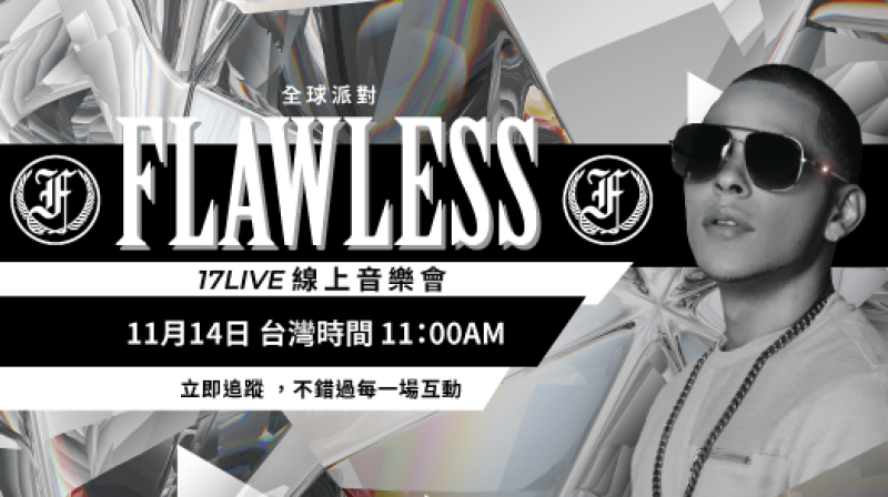 Flawless透過直播向歌迷分享他在工作室等日常生活花絮,自10月15日起在LIVIT(17LIVE)上專屬帳號「flawlessri」正式開始直播。他也宣布將於台灣時間11月14日11:00-13:00(美國時間NOV13th 6PM PST/9PM EST) 在17LIVE(LIVIT)舉行他首場線上直播演唱會,讓全球樂迷可以透過17LIVE(LIVIT)平台直播同步免費欣賞到Flawless特有的嘻哈魅力舞台。