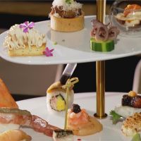 三層英式點心架上,不放蛋糕,居然是日式料理,酥香塔皮包的是牛舌,星鰻捲上還能擠入蔬菜熬煮的醬汁,還有當季寒鰤魚,一條魚只有一塊的血核肉。