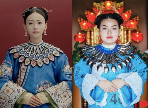 宮廷劇史上最嗆角色魏瓔珞也難逃這位泰國Coser的手掌心,這款瓔珞在魏貴人時期穿的服裝在肩膀的「雲肩」裝飾,在泰國妹妹的創意之下變成正反大小交錯散開的銀湯匙,如果大家把圖拉近一點看,他頭上還有兩隻蝦的裝飾咧~