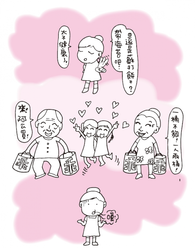 A:其實真的不會!反而還滿滿的感謝!感謝長輩願意幫我顧小孩!長輩照顧孩子時,正是家長難得的休息時間,看到孩子跟自己最重要的親人相處得很好,幸福的感覺多過於煩惱。我其實很好運,我的爸媽、公婆以及長輩親友們,都非常明理,很尊重我們夫妻的教養方式,總是讓孩子吃好的、買好的,滿足我們小氣夫妻給不起孩子的。孩子很喜歡去祖父母、姨婆、阿姨、姑姑家,回家後總是唸著對方對她們多好、跟爸媽差很多!每次被媽咪爸比責難,也常抱怨我們沒有那些長輩們對她們的寵愛。當然難免會覺得「好不容易訂下的規矩,沒有遵守怎麼辦?」、「討救兵的習慣養成了,我以後怎麼教?」但是轉念想想,自己小時候跟長輩相處的日子,都是美好的回憶,阿公阿嬤寵溺的態度,正是孩提時代最難忘的好時光!長大後,和父母相處的時間還多,但陪伴阿公阿嬤的時間就少了,雖然上一代與我們的教養觀念會有許多不同,需要磨合與溝通,但享受天倫之樂還是比遵守規則更值得,偶爾放縱一下沒關係!