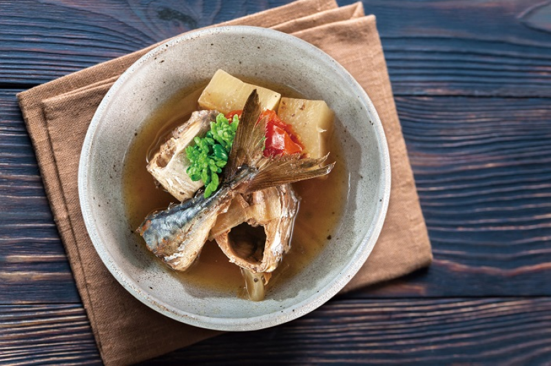 這道料理用壓力鍋煮,魚骨已經軟化,可以一併入口;魚肉鮮嫩入味,非常下飯,也可以將醬汁淋在飯上享用!代表同一個壓力鍋分層放入每道菜的食材,就能一鍋變出三道菜,省時又省瓦斯!