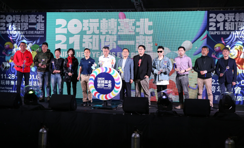 眾所矚目的「臺北最High新年城-2021跨年晚會」系列活動「2021玩轉臺北,和你一起」今(28)日於臺北市大湖公園舉辦點燈記者會,熱情宣告臺北跨年系列活動正式起跑!臺北市長柯文哲與全能創作才子蕭秉治攜手在大湖公園裝置藝術「青青草原」前,透過創新的「Multi View」多視角技術呈現,同步點亮7大裝置與周邊街道燈飾,美景一次曝光,驚豔眾人。