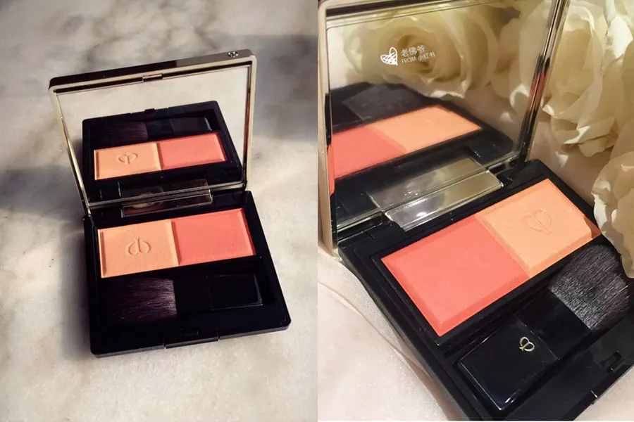 面對乾肌總是飛粉的情況,除了腮紅液、腮紅膏,其實肌膚之鑰這款腮紅盤也是選擇之一。其中添加摩洛哥由,因此粉質本身就偏濕,抹上肌膚後也能為肌膚補水,自然不飛粉不龜裂。粉蕊分成兩塊,成了顏色的差別,質地上有LOGO的是珠光,左邊沒有LOGO的則是絲絨,讓大家擁有雙色雙質地,風格轉換超容易。
