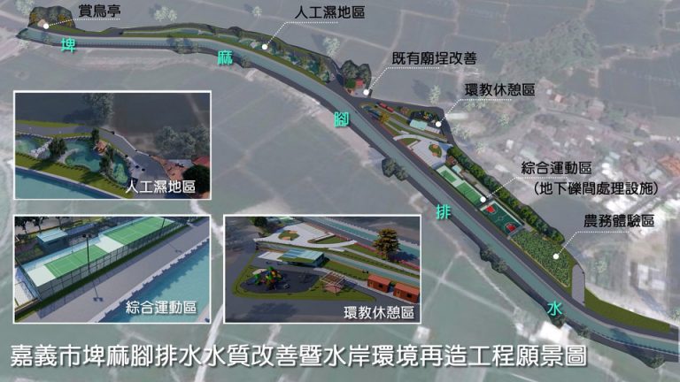 〔記者郭嘉良/嘉義市報導〕為淨化大溪里居民生活污水改善當地埤麻腳排水水質,嘉義市政府環境保護局108年向經濟部水利署及行政院環境保護署爭取前瞻基礎建設-全國水環境改善計畫經費新臺幣6,000萬元,規劃在大溪里庄尾建置一座日處理量3,000公噸之地下式礫間處理槽,後面串接人工濕地,預計可分別削減水中生化需氧量、懸浮固體及氨氮6至8成不等,使埤麻腳排水水質從目前之嚴重污染提升為中度污染。