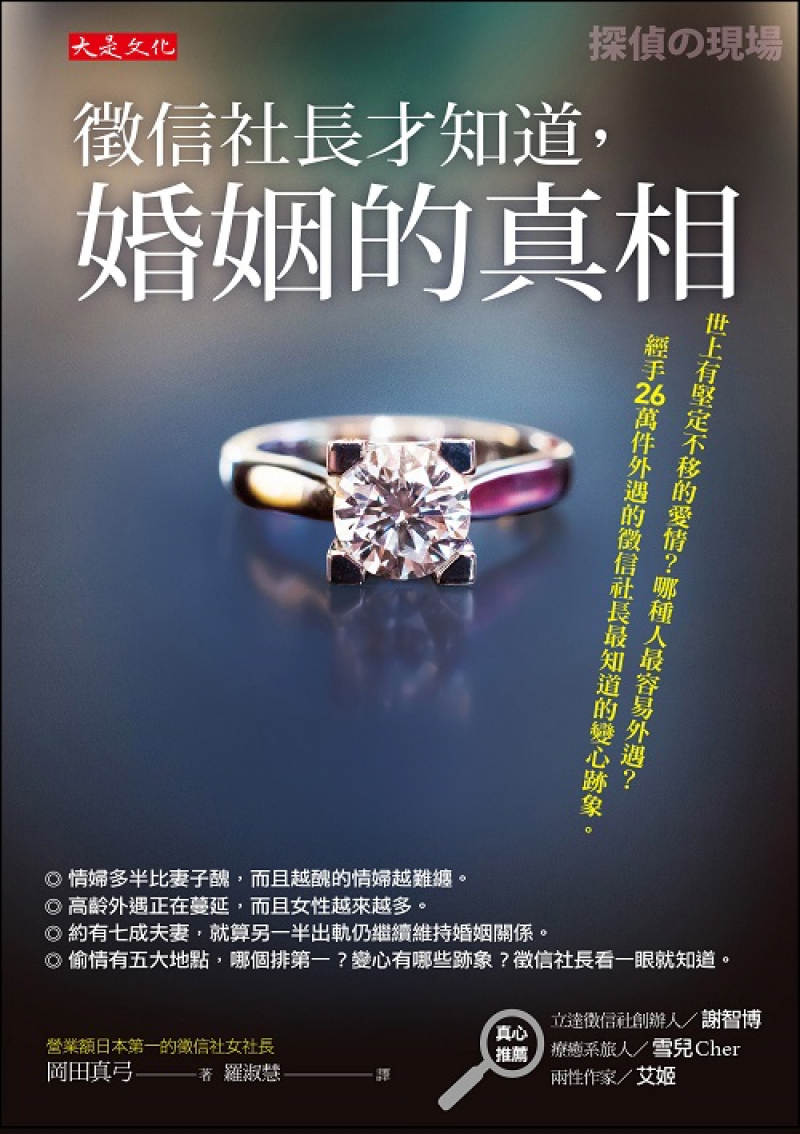 本文摘自大是文化《徵信社長才知道,婚姻的真相:世上有堅定不移的愛情?哪種人最容易外遇?經手26萬件外遇的徵信社長最知道的變心跡象。》
