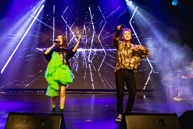 張語噥看到全場「Mi粉」歡呼支持,不禁紅了眼眶:「其實已經隔了6年沒有一個人完整唱跳,謝謝你們給我的愛,讓我可以站在這裡!」她還重現當年選秀舞台,唱跳《超級偶像》組曲,一連韓樂《Gee》、徐懷鈺《妙妙妙》和蔡依林《大藝術家》,讓全場都嗨翻!嘉賓婁峻碩說因為焦凡凡而認識張語噥,「很開心能擔任語噥人生第一場演唱會嘉賓!」兩人合唱《翅膀》,語噥還試著唱了一段饒舌進來,讓婁峻碩驚喜大呼:「很有fu!」兩人相約未來合作一首Rap風新歌,讓全場立刻歡呼!采子則和張語噥相知相惜,本身擅長體育的采子,形容語噥是「奶油手」,常接不住球,下一秒就去牽張語噥的手,讓整場觀眾尖叫連連!