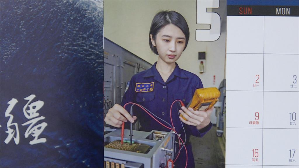全新桌曆,展現海軍,溫柔細心一面。面對中國共軍騷擾,台灣需求兵力大增,在政府支持下,召募留營成效好,從去年的73.6%上升至78.8%,今年志願役士兵招募共1萬1128人。立委莊瑞雄說,「展現說我們募兵裡面不是只有男性,我們也需要很多女性官兵在國防方面撐起一片天,女力真正的一個展現。」