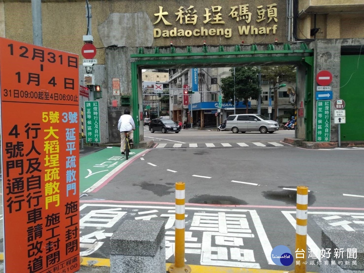 台北市水利處25日表示,該處將於12月31日上午9時起至110年1月4日清晨6時止,同時封閉淡5號(大稻埕)及淡3號(延平)疏散門進行門體及軌道的更新施工,屆時除該2座疏散門間的堤外交通便道將封閉無法通行,淡1號(桂林)疏散門至淡3(延平)疏散門間的堤外機車道也將配合工程封閉。