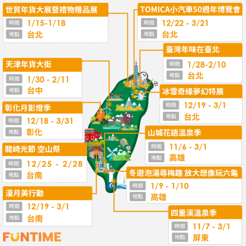 從12月的聖誕節、跨年一直延續到2月的農曆春節、元宵節,許多主辦單位直接把活動延長、又或是提前開始!好好把握機會,可別錯過這些好玩的活動!