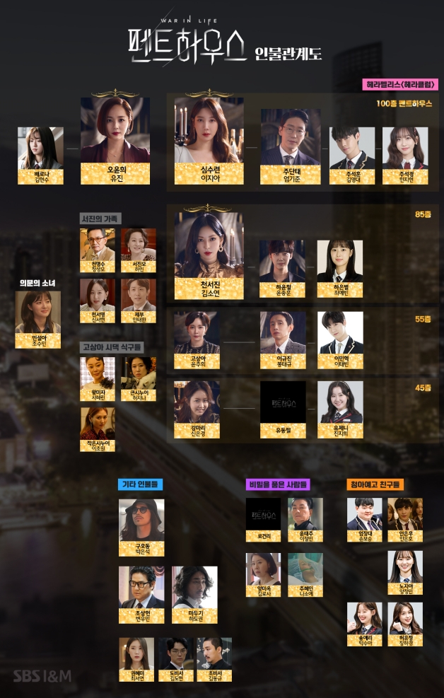 在人物關係圖中,可以發現最右側寫著「樓層」,住在頂樓的沈秀蓮、85樓的千書真、55樓的高尚雅和45樓的姜瑪莉,當大家都以為吳允熙是局外人時,殊不知她未來可能會從45樓漸漸登上Hera Palace頂層,將與沈秀蓮並列頂樓女主人!