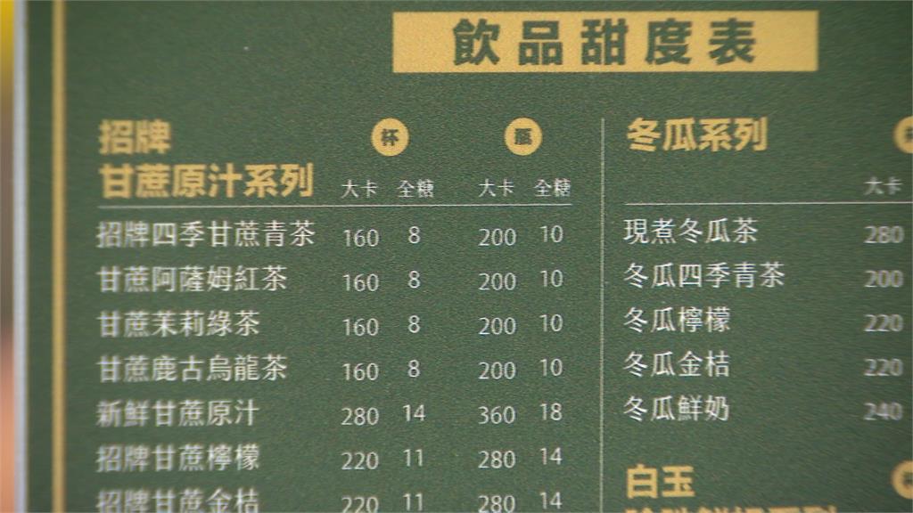 元旦開始,手搖飲店需強制標示熱量和糖分,實際走一趟各大手搖飲店,業者紛紛貼出標示,不過有的卻是貼在店裡的角落,甚至字小到消費者很難察覺。而且仔細觀察還能發現,同一個品項的飲料,在各家店的熱量都不同,以基本款鮮奶茶為例,50嵐大杯的是334卡、可不可是331卡、迷客夏248卡、水巷茶弄為302卡,不過甘蔗媽媽的鮮奶茶只有190卡,伊莉莎白紅茶書屋的鮮奶茶則是176大卡,明明同品項,但熱量一差幾乎就是近兩倍,讓許多消費者直呼還是第一次發現!