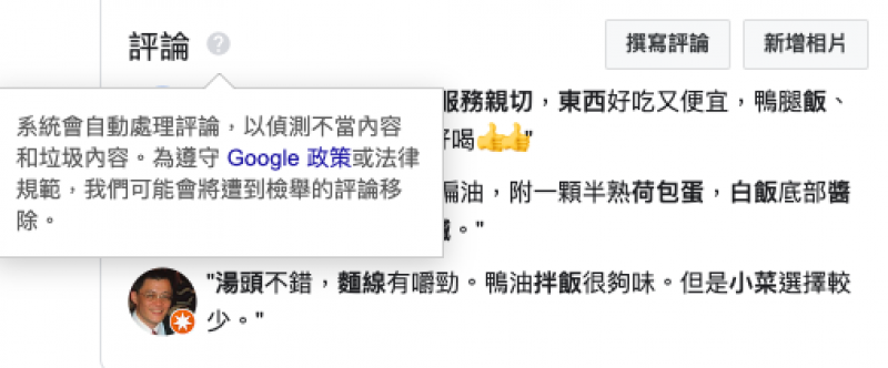 根據Google評論的政策,若瞬間大量的留言評論與此店家沒有關聯,可能會遭到系統判定為惡意評論而移除。