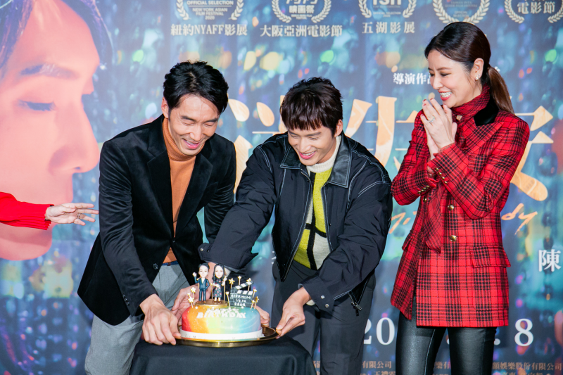 今日(1/5)於MUVIE CINEMAS盛大舉辦首映會,在嚴峻的疫情下,3位主角首次合體現身,適逢本月6日是李李仁的生日,在首映會上也特別獻上蛋糕,造型更充滿巧思,分別呈現了帥氣版的李李仁及嫵媚版的安狄造型翻糖蛋糕,看到如此別出心裁的蛋糕讓李李仁感動不已,開心感謝所有人的祝賀,並在眾人的溫馨祝福之餘,也許願「《迷失安狄》票房熱賣」,電影將於1月8日正式上映。