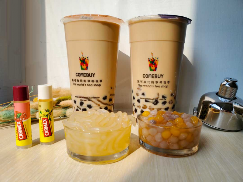 在奶茶界中,COMEBUY最讓人印象的明星商品,絕對就是「雙Q奶茶」。香醇奶茶中加入珍珠X芋圓X薯圓,讓人一次就能享受三重Q彈口感,早已顛覆以往的經典風味。今年隨著COMEBUY邁入二十年,一直堅持每杯現點、現泡、現萃的好茶,更是領先業界以最高標準,自行設立安全實驗室,針對每批到門市原物料進行嚴格自主檢驗,並且透過第三方公證單位,進行逐批茶葉檢測,就要讓人感到安心且甜蜜再加倍。