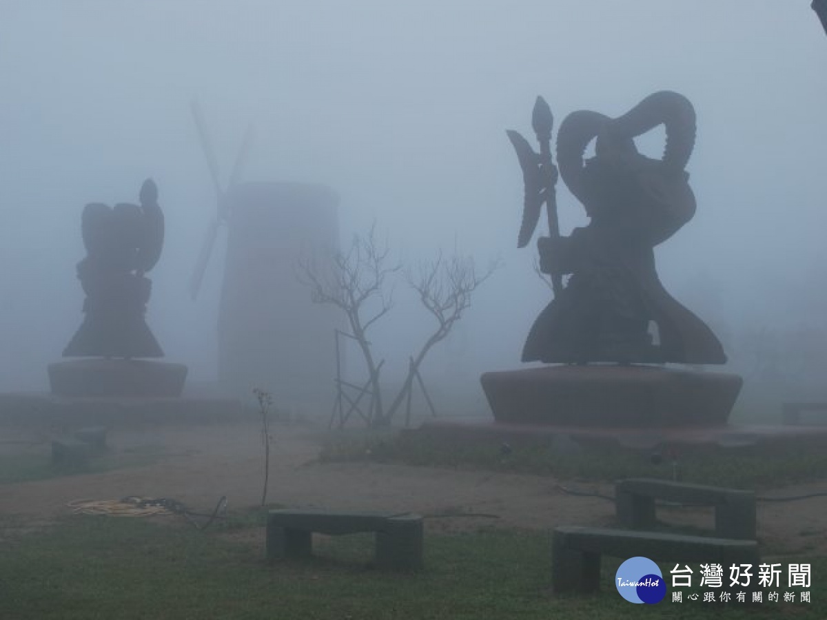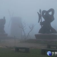 多次強勁寒流過境台灣,台中市鐵砧山風景區出內多次出現濛濛濃霧籠罩、山中諸多神像、花樹,若隱若現,自然的美色宛如傳說中的仙境,晨運人士及遊客看得流連忘返。