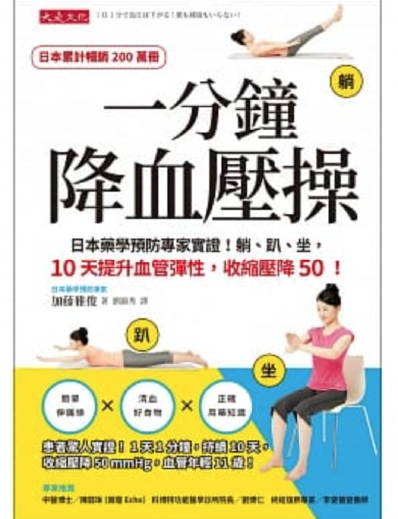 本文摘自《一分鐘降血壓操:日本藥學預防專家實證!躺、趴、坐,10天提升血管彈性,收縮壓降50!》