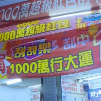 萬華這處巷口的彩券行,高掛布條,寫著刮刮樂,中百萬大獎,因為近來有民眾,刮中一百萬元,巧合的是,據了解這名幸運兒表示,他當時手拿兩千元大鈔,一陣強風吹進去這彩券行,買了張刮刮樂竟意外中大獎。