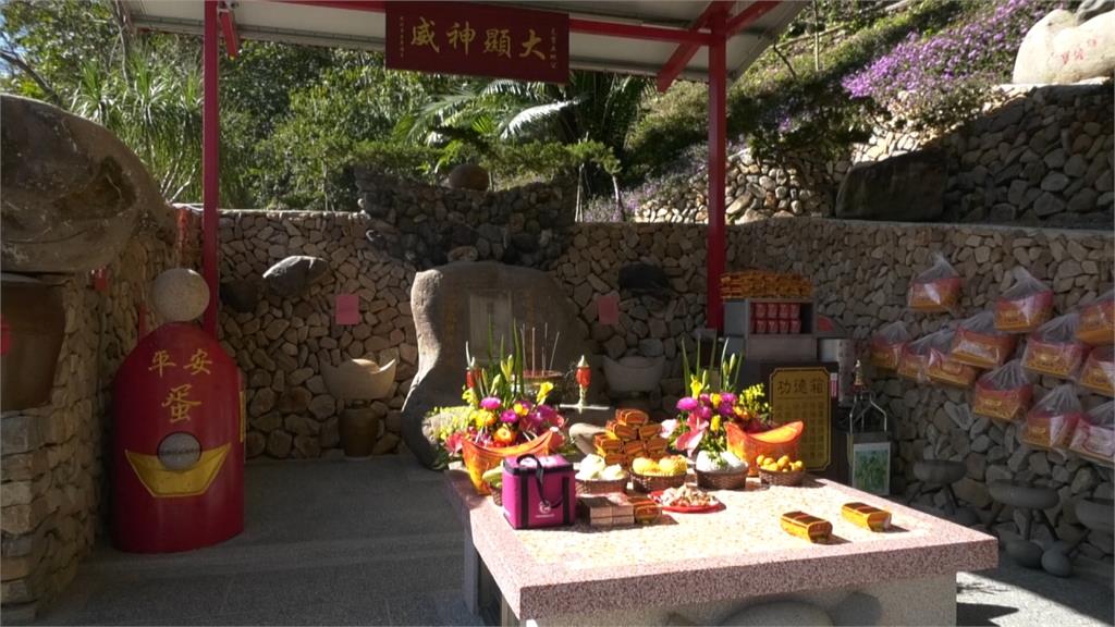 土地公廟管理員莊政彥說:「特色就是我們對面就是元寶山,還有我們這邊有很多造景的石頭,都是天然的奇石、天然的藝術品。」