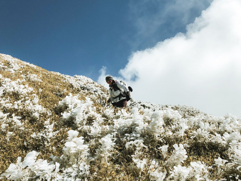 回想此次拍攝印象最深刻的事,詹喬愉說:「帶了很久沒使用的綁帶冰爪,真正穿上時,兩隻腳的帶子都掉了,更慘的是連鞋底也都掉了,因為是雪季,山路都結冰,真的很慘烈。」為了完成拍攝,她還是克難的走完這八天的行程。