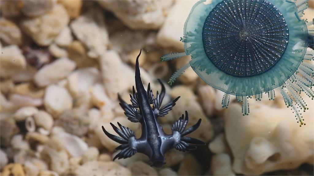東管處綠島站主任王芸琪說,「海蛞蝓牠是食用僧帽水母,但是牠會保存僧帽水母的毒性,其實牠本身身上也會帶一些毒性。」連假期間,有民眾到綠島出遊,發現這一幕,驚呼連連!海蛞蝓會隨著風或浪潮飄流,每次停留的時間不固定,想看可得碰碰運氣。不過東管處提醒大家,這兩種看似無害的生物,可都有劇毒,民眾如果用手觸摸,後果不堪設想。