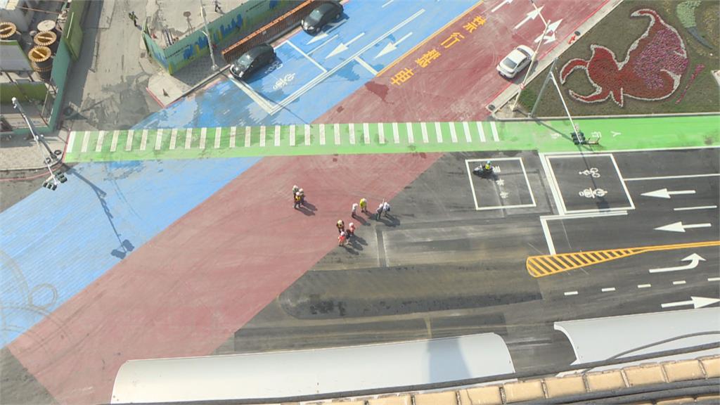 高雄市交通局再次來到現場會勘,確認機車待轉區的動線標示沒問題,下週一通車時也會加派警力引導,確保行車安全。