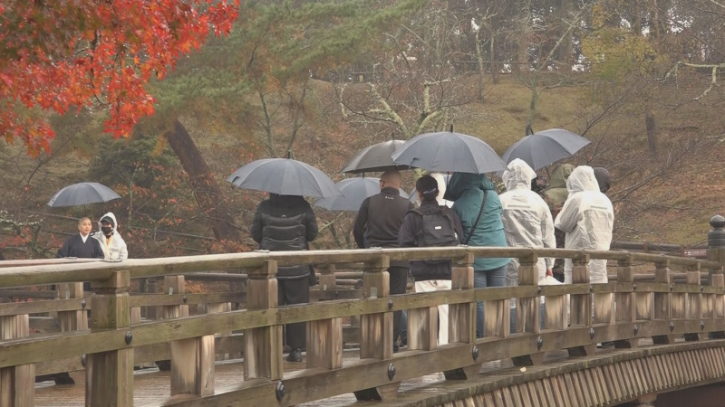 唐美雲說出外景最怕的就是天候無法掌控,果然就碰上在奈良公園勘景完一開拍就下大雨