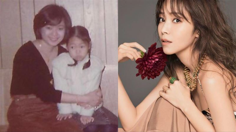 ▲侯佩岑小時候與媽媽林月雲的合照。(合成圖/翻攝自侯佩岑微博、臉書)