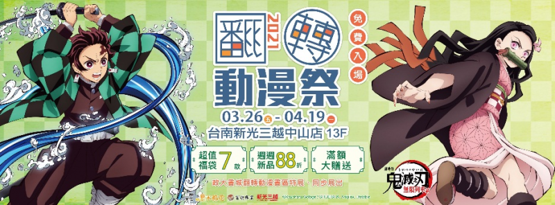 2021清明連假去哪玩?木棉花在3月26日至4月19日於台南新光三越中山店舉辦「木棉花翻轉動漫祭 一『童』享樂趣」動漫活動,並合作「政大書城」舉辦「政大書城翻轉動漫書區特展」,創造所有年齡層都愛的動漫空間,有《鬼滅之刃》、《名偵探柯南劇場版 緋色的彈丸》等多達13個動漫場景可以拍照,還有千樣動漫週邊商品、7款福袋組合與週週優惠的新品,購買兒童節禮物免煩惱!
