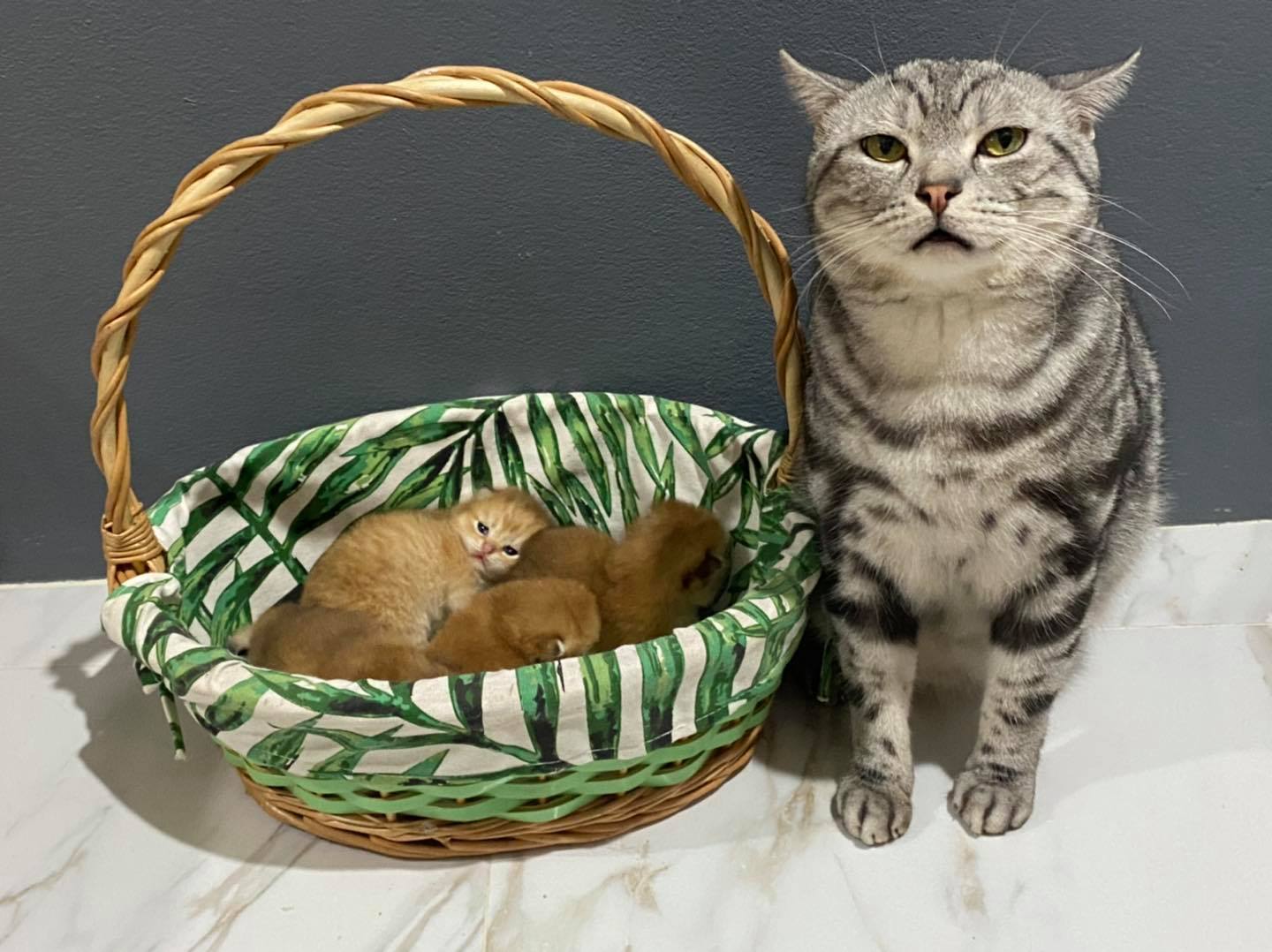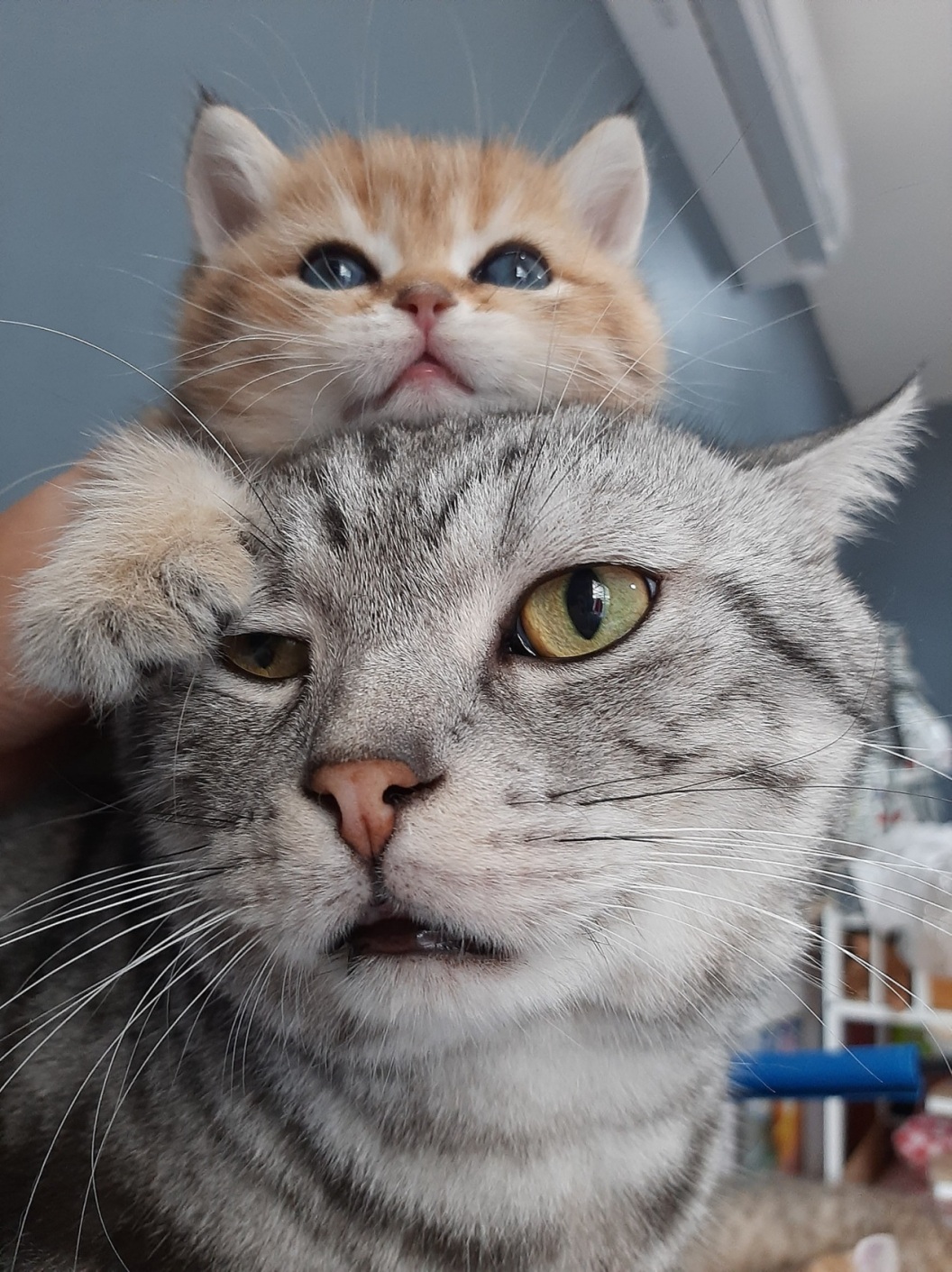 前陣子他們家生下一窩小橘貓,Tod便開始了牠的托嬰之路,瞧牠厭世的樣子應該是不太想帶小孩?牠顯露出的表情除了煩悶就是無奈,一副就是「你這小傢伙可以離我遠點嗎?」的臉。(笑)
