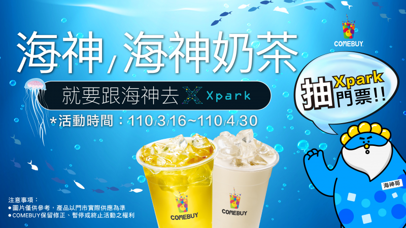 春天的腳步到來,但受疫情的影響沒法出國很鬱悶嗎?知名連鎖飲料店「COMEBUY」今年邁入第20周年,再推出傳奇經典茶飲「海神」系列茶,本次更攜手日本知名水族館「Xpark」,讓大家喝好茶;還能感受大海生物悠游的愜意。凡於活動期間2021年3月16日至4月30日至全省COMEBUY門市消費經典海神或海神奶茶(L杯)任乙杯,憑消費發票即可登入專屬活動抽獎頁面( https://lihi1.com/kdopz ),填寫抽獎資料就有機會抽中市值550元門票乙張,總共100名幸運得主,數量有限,抽完為止唷!今年春天就要你身歷大海,享受慢活悠游的快樂。