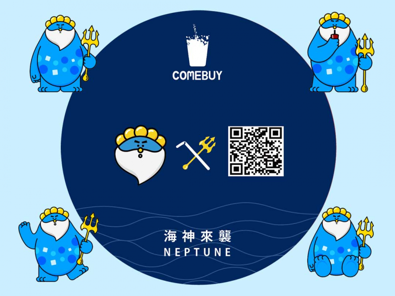 COMEBUY更在今年海神檔期推出,象徵海神的吉祥人偶:「海神哥」,如同二十年一直堅持做出每杯現點、現泡、現萃的好茶,別看他高大可愛的外表下,個性可是相當冷靜沉穩並且具有正義感,就像COMEBUY領先業界以最高標準,自行設立安全實驗室,針對門市原物料進行嚴格自主檢驗,並且透過第三方公證單位進行茶葉檢測,就是要為茶飲做正義的把關化身。未來將針對可愛的海神哥,打造一系列周邊商品要回饋各位支持粉絲,請隨時關注之外,也可上FB粉絲團進一步認識他唷!