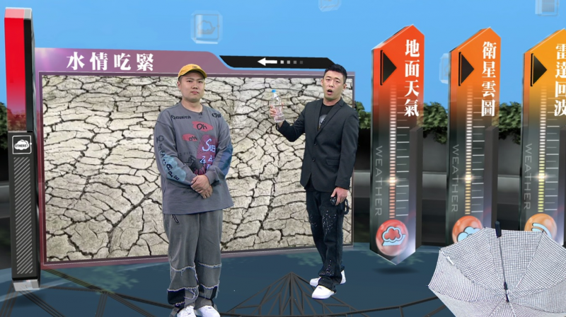 面對正經八百的播報台,玖壹壹仍不改耍寶風格,當健志播報台灣嚴重缺水時,春風不顧畫面呈現,直接跳進播報台遞上一把傘,隨後洋蔥也衝進畫面,送上一瓶礦泉水,健志拿起礦泉水順勢替自己樂團宣傳:「希望雨下滿911毫米,像911一樣,愛你不踩煞車。」無厘頭的播報,笑翻大家。而玖壹壹為了證明自己是最Local的天團,還以台語播報氣象,相當敬業。