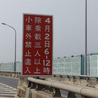 高公局交管組組長徐福聲表示,「高乘載管制,資訊能夠完整提供,字數又不能太過精簡,早期的話是用文字表達,兩年前檢討,如果用圖形化來表示,是不是用路人更快判斷,圖形化告示牌,用在管制交流道上游路段,那個地方算是預告性的。」