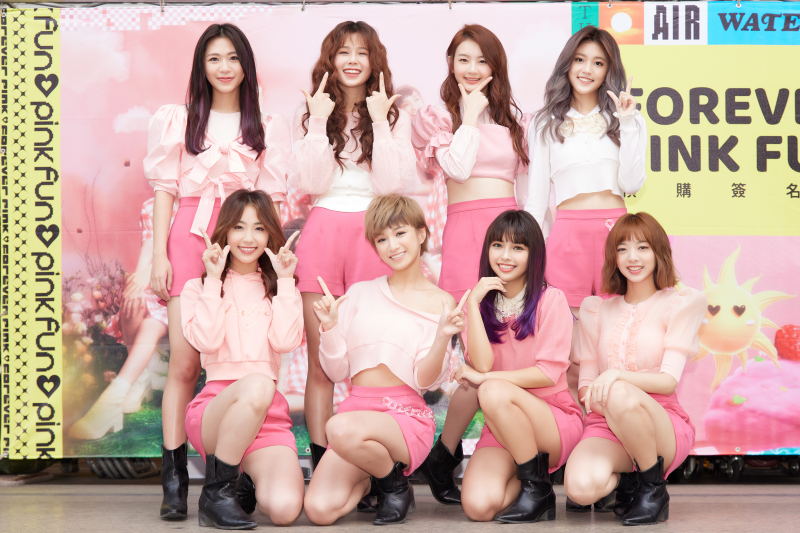 初戀系女團PINK FUN全新寫真虛擬EP《FOREVER PINK FUN》預購銷售開紅盤,今(3/20)在統一時代百貨台北店舉辦預購簽名會,八位女孩以可愛又帶點性感的新造型現身,隨即引爆台下爆滿冰棒們(PINK FUN粉絲暱稱)的尖叫聲,大喊:「太可愛了!」