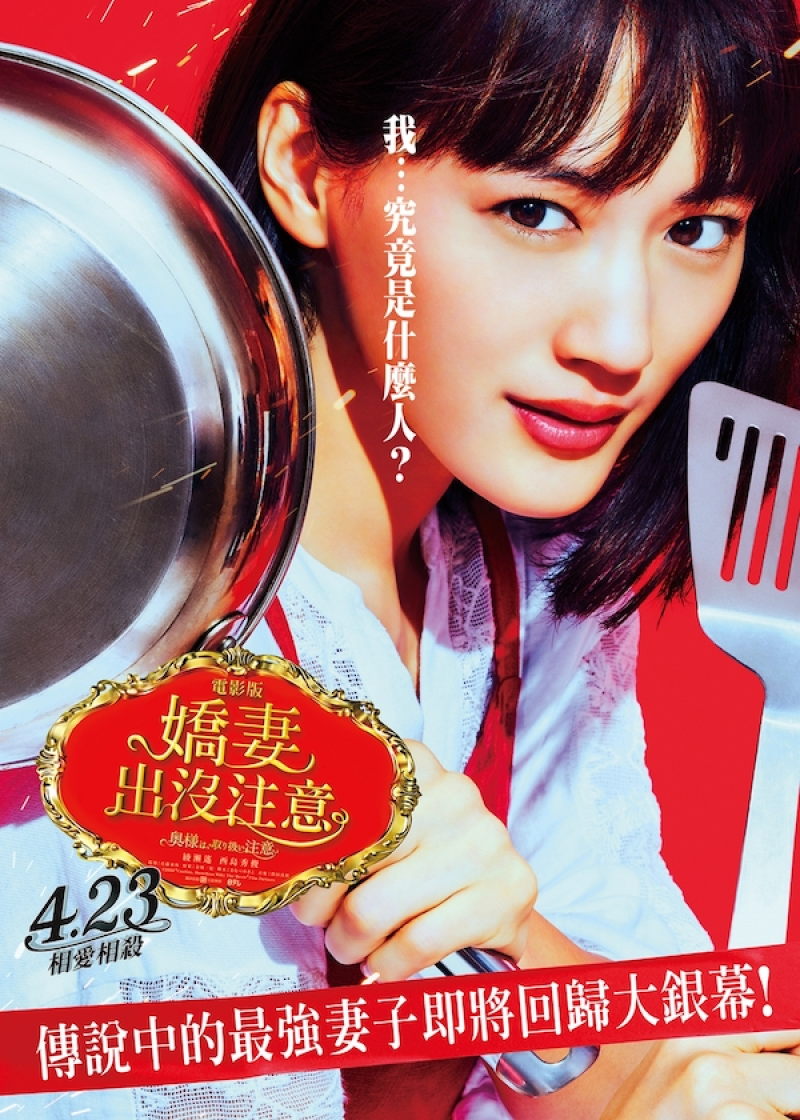 由東瀛女神《海街日記》綾瀨遙、型男大叔《昨日的美食》西島秀俊共同主演的動作喜劇《電影版 嬌妻出沒注意》台灣正式定檔4月23日在台上映。電影版將是2017年開播的高收視話題日劇《嬌妻出沒注意》的接續故事,日劇最後一集在夫婦相愛相殺的一聲「槍響」下完結,開放式的結局留下許多懸念,而這次電影版將解開觀眾長久以來的疑惑,迎來史詩般的精彩大結局。