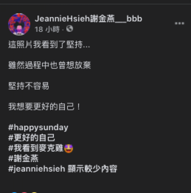 其實,謝金燕之前曾透露過,「為了要紅很久」,自己也認了要練出這樣的身材很難,私下對自己的身材要求相當嚴格,最多只吃七、八分飽,每天也會逼自己運動