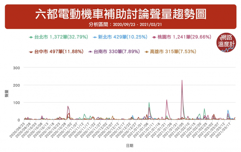 ☞ 電動機車增長數六都第一-新北市(聲量:429筆)