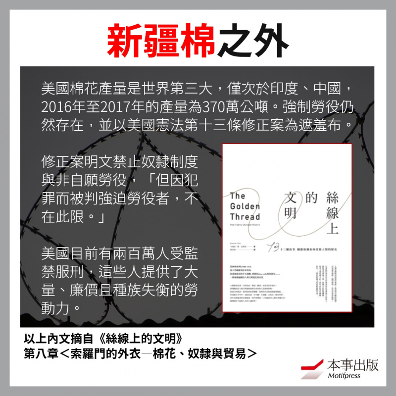 新疆以外的棉花,真的就沒沾上血汗嗎?本事出版《絲線上的文明》深度全面剖析瑞典服裝品牌H&M宣布因人權疑慮,停止採購新疆棉花,此舉引發中國網友抵制。抵制風波火速蔓延至各個與「良好棉花發展協會」(Better Cotton Iniciative,簡稱BCI)合作的服裝品牌。但,除了新疆以外的棉花,我們就真的能安心嗎?