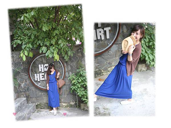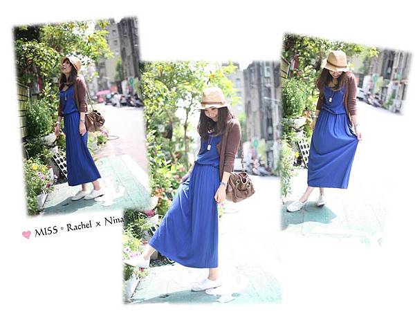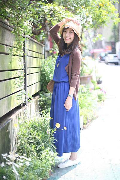 草帽x洋裝x白布鞋,很標準的夏天裝扮,藍x白的配色在夏天也是常客!