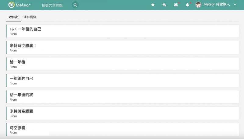 高校生論壇Meteor希望讓所有高校生記住自己最青春的模樣和心情,特別選於論壇五周年(2021年3月24日)的日子舉辦「米特時空膠囊」活動。只要你有想說的話或是想表達的心情,都可以透過該論壇創造的虛擬人物「Meteor 時空旅人」紀錄下來,「Meteor 時空旅人」將封存該信件一年,一年後回信給所有參加「米特時空膠囊」活動的用戶,讓所有用戶重新回顧自己一年前的話。
