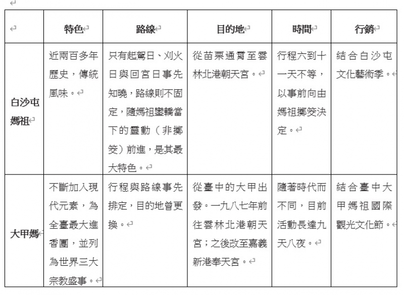 苗栗白沙屯拱天宮與臺中大甲鎮瀾宮的媽祖進香,同列為中華民國文化部「國家重要無形文化活動資產」,也是媽祖進香的兩大重頭戲,但兩者仍略有不同之處: