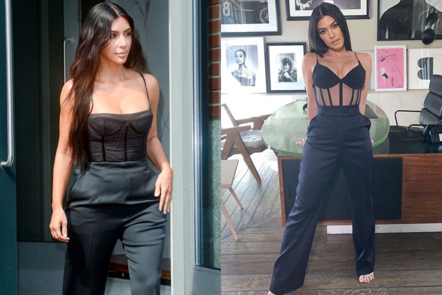 本身做工就精緻非常的馬甲,選擇設計簡單大方、不用蕾絲點綴的款式,就能減少穿內衣出門的違和感,相對容易穿出時尚氣場!金家二姐卡達夏(左)以及大姐Kourtney都喜歡以黑色馬甲搭配寬褲,拉長雙腿比例,又能收窄腰線,展現漂亮曲線卻不會給人色情感、露得高級!
