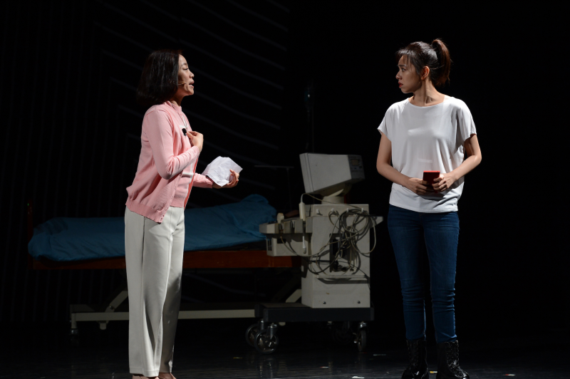 劇情催淚,讓她與范瑞君在謝幕時都紅了眼眶,台下的觀眾都看得到她們臉上的淚珠,范瑞君直喊:「縱使和夏于喬在戲裡母女溝通一直錯頻,但演出前都會給彼此一個深深擁抱,建立起屬於劇中母女的情感支撐,與彼此對於愛的渴求。」她透露:「也許戲裡她飾演的媽媽一點也不完美,會有疲憊不夠堅強之處,但真的是用盡力氣在替兒女著想。」而她也因戲產生職災,一場跌倒戲,跌到她肩膀痛到抬不起來,自嘲自己過於拼命,「首演完後第一件事要好好療傷」。
